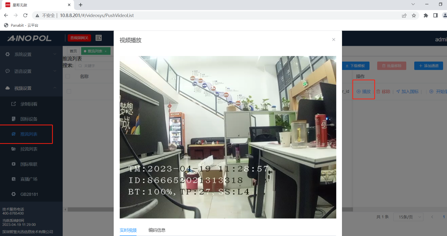 1:添加 头盔编码,新增互联网设备( 编号需要通过设备获取查询 )2:检查一下推流列表(对接成功就会有一个)3:检查可以观看后,然后可以在“指挥调度” 》 “单元管理” ,将此头盔添加4:最后去指挥调度看效果!~'环境说明' 系统版本:C01V02R003P2304141:添加 头盔编码,新增互联网设备( 编号需要通过设备获取查询 )2:检查一下推流列表(对接成功就会有一个)3:检查可以观看后,然后可以在“指挥调度” 》 “单元管理” ,将此头盔添加4:最后去指挥调度看效果!~文档更新时间: 2023-10-18 10:10 作者:admin