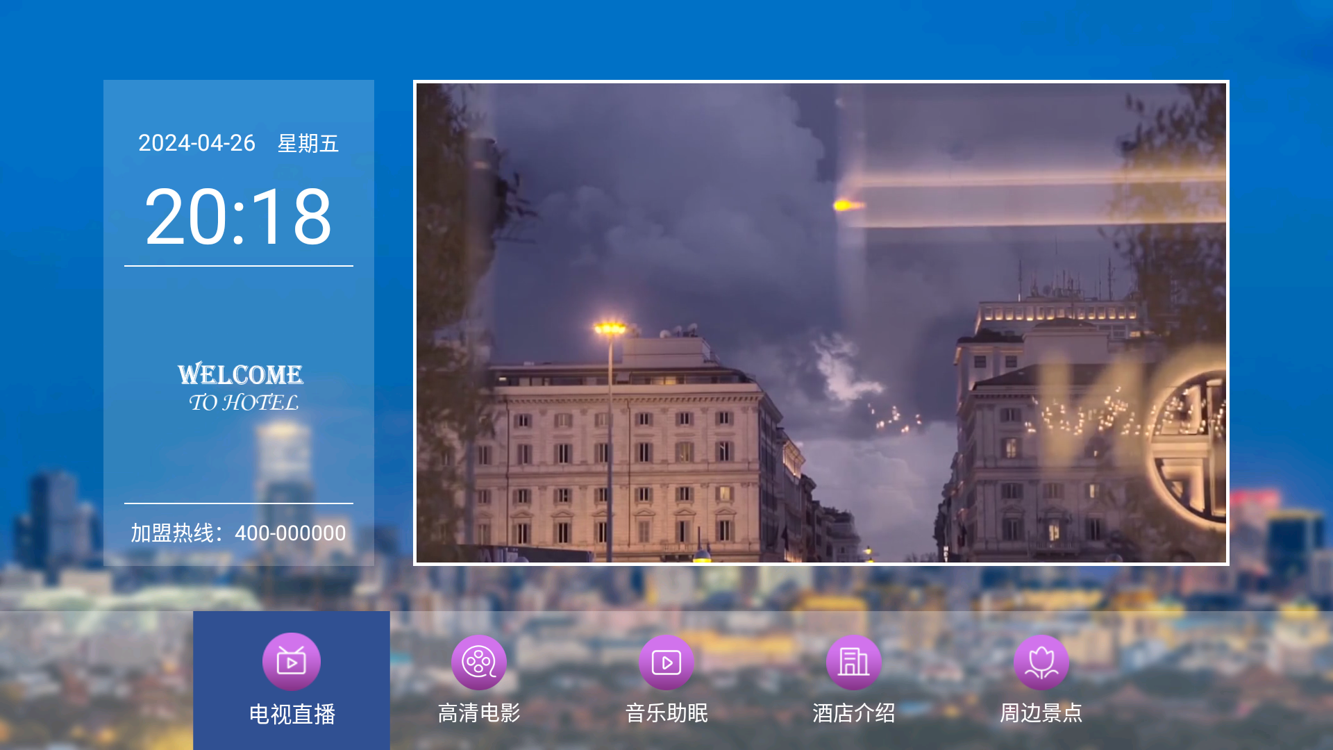 - 4.3 编辑选项“其他配置”进入( 含 WIFI设置、应用中心、酒店介绍、CIBN聚精彩、旅游景点、美食推荐、本地特产 )