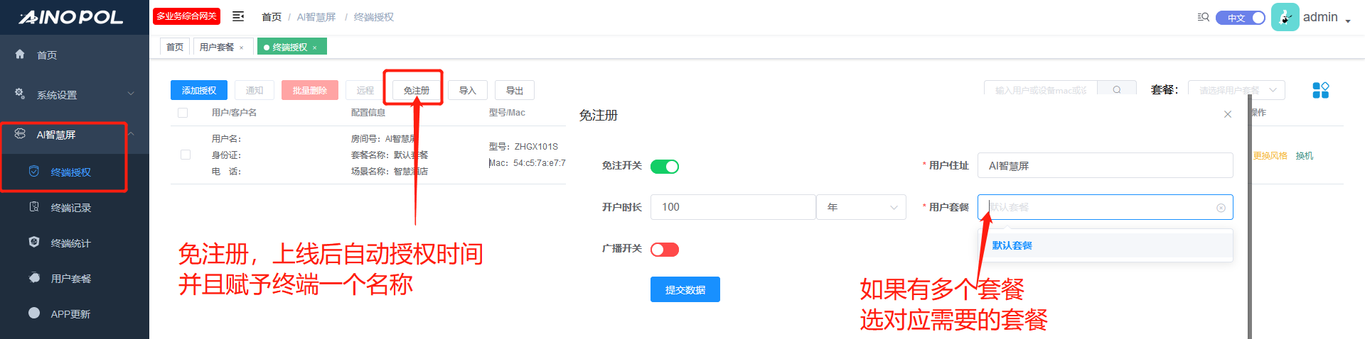 6. 终端上线,安装APK软件测试,后台授权终端