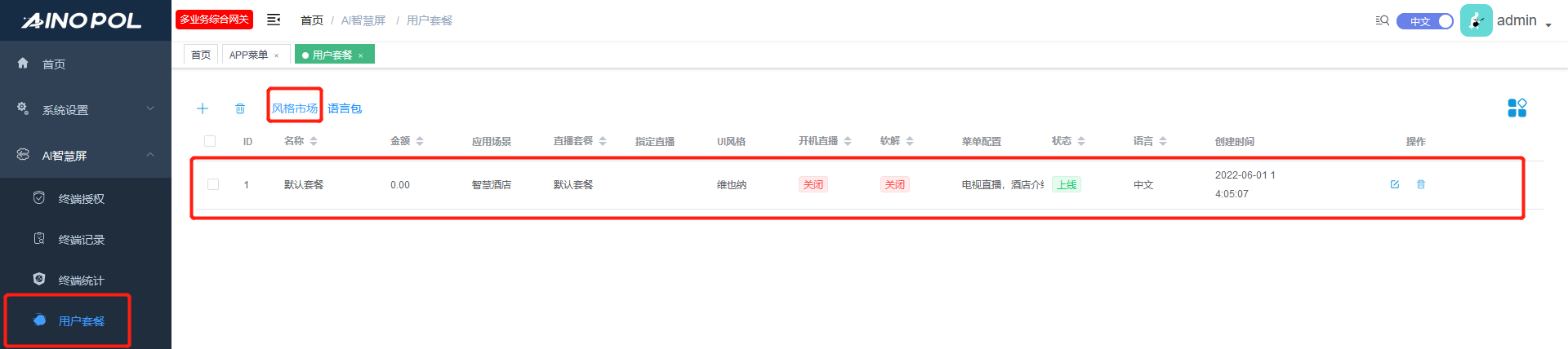 5.2 风格市场同步风格、用户套餐勾选对应APP使用风格对应直播套餐