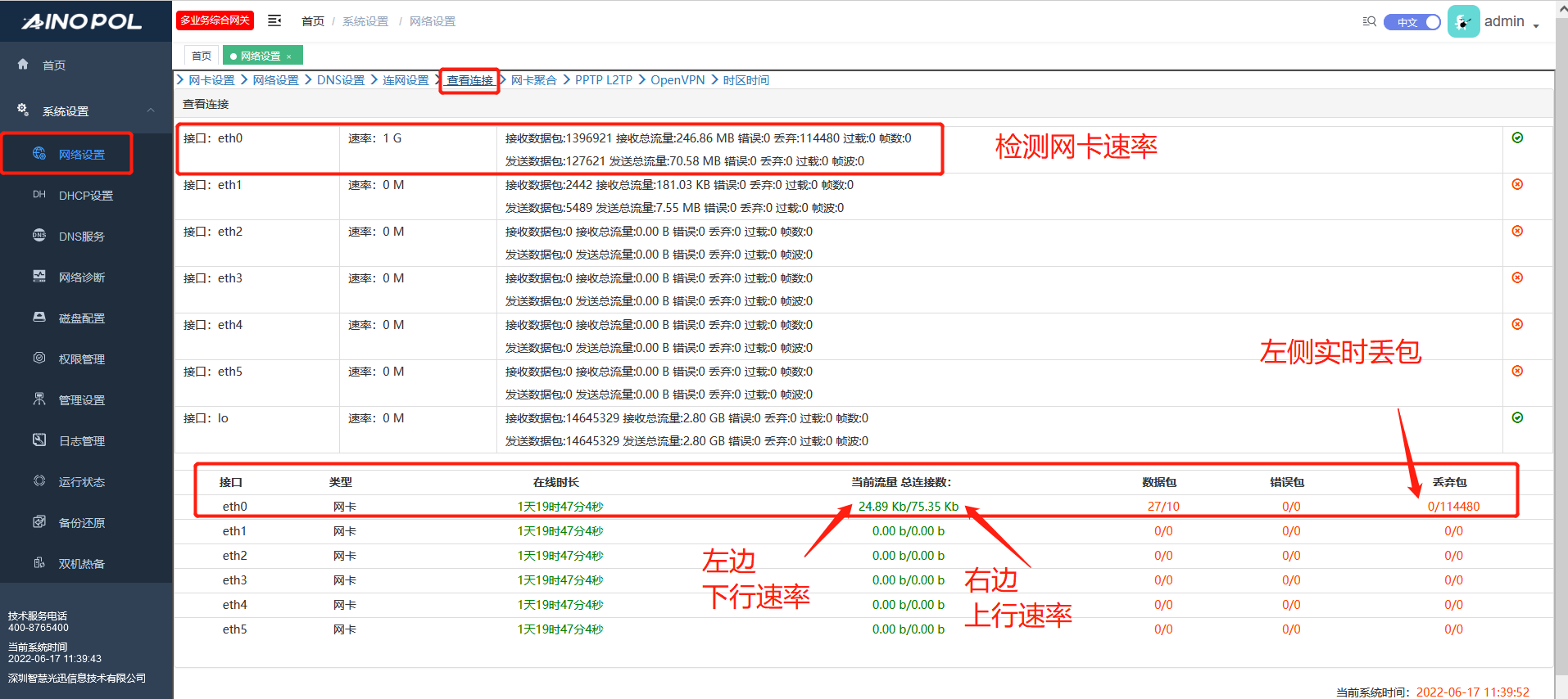 1. 1 查看网卡状态情况(实时流量与丢包率)