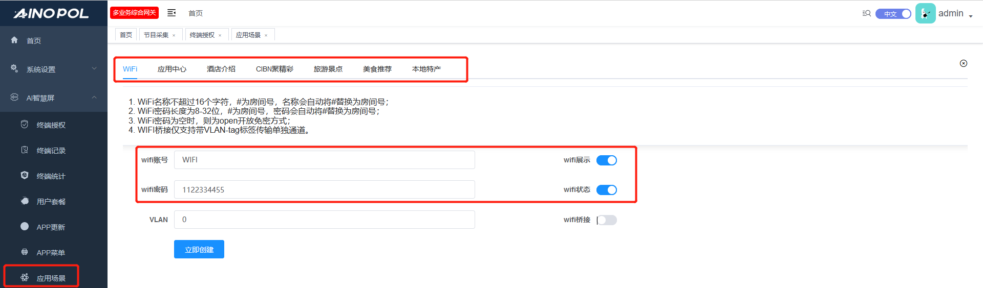 1. WiFi名称不超过16个字符,#为房间号,名称会自动将#替换为房间号。