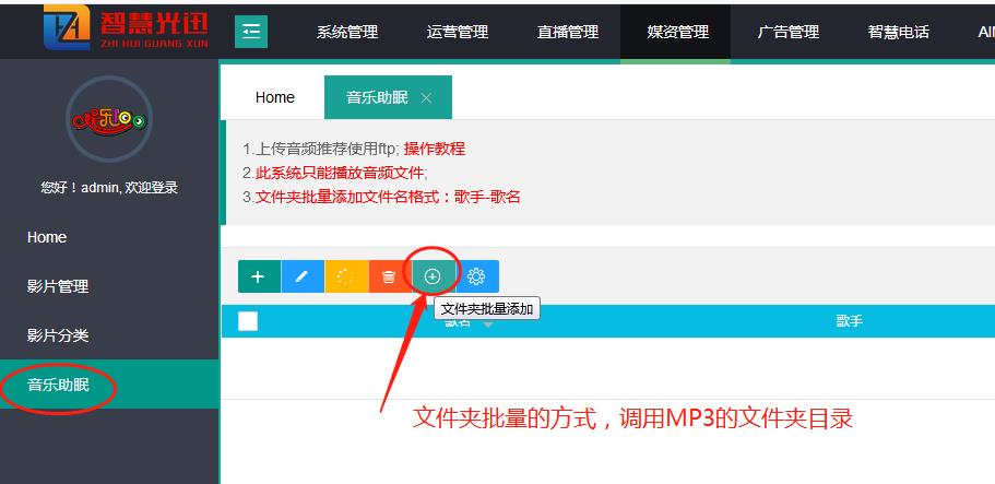 6. 在音乐助眠中找到 文件夹批量添加按钮