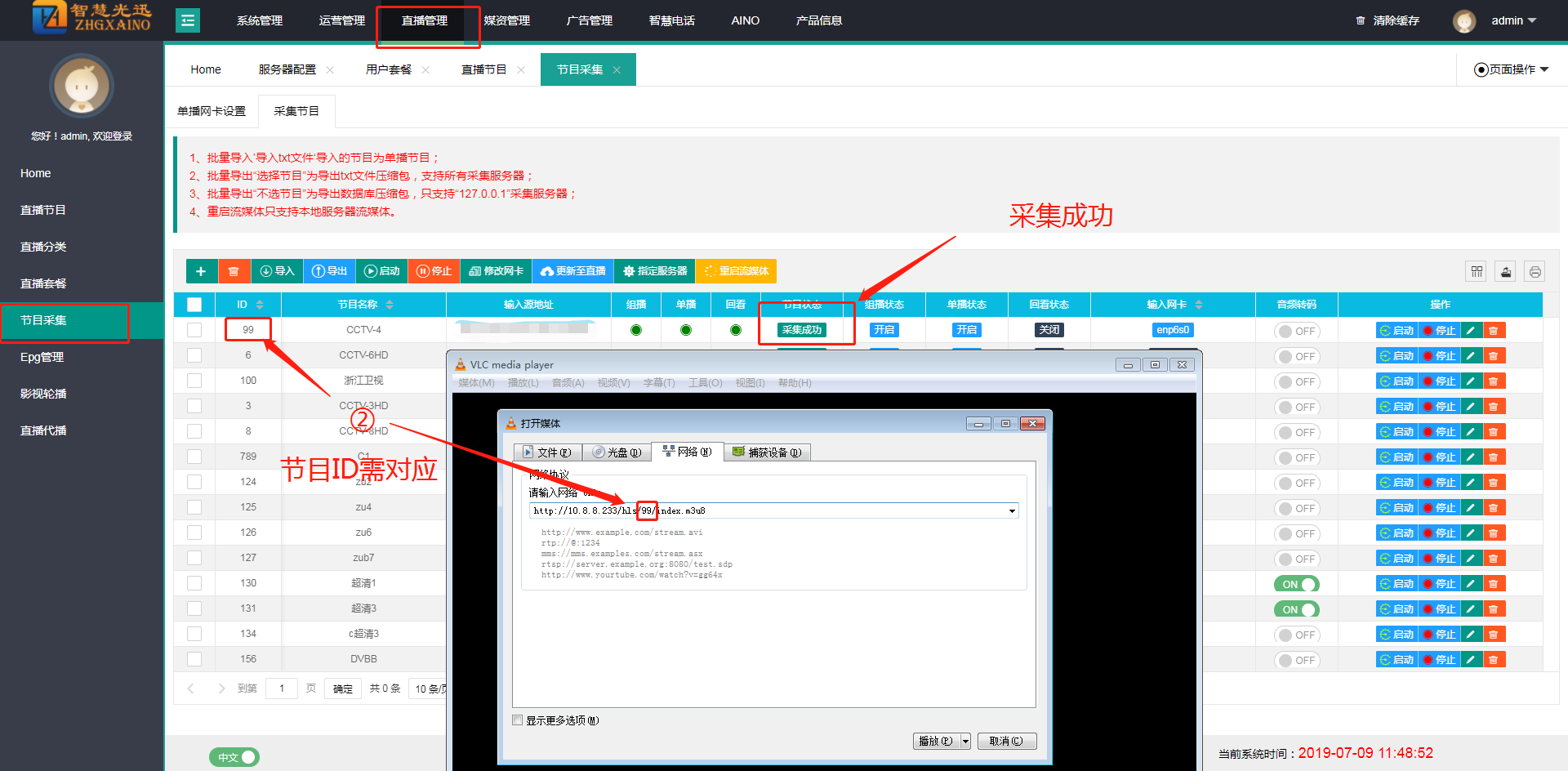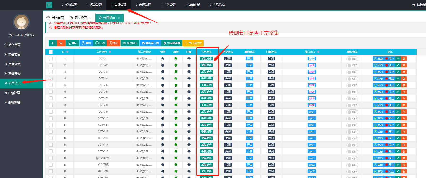 - 2. 检测服务器节目输出对应ID号,测试节目地址输出是否正常