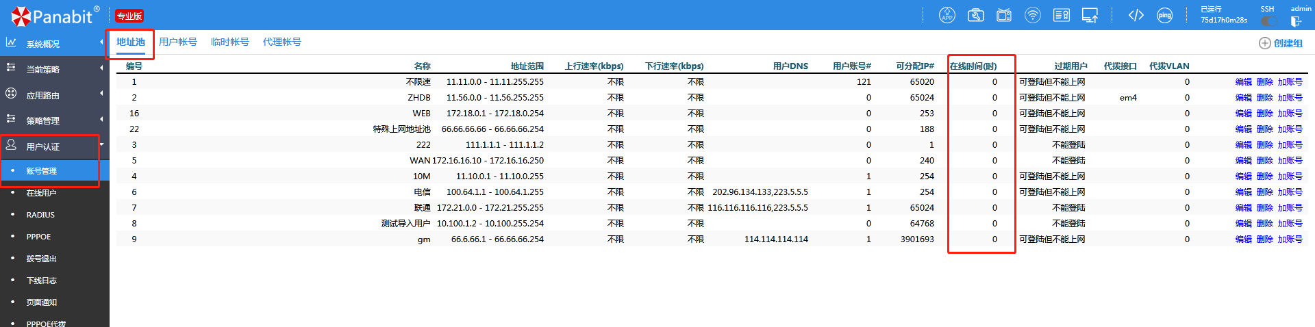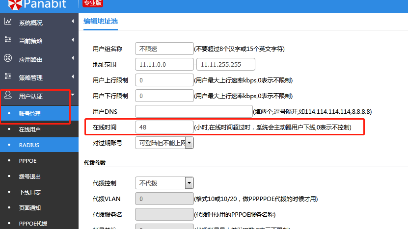 目录 搜索 Panabit一,快速判断WAN口是否异常丢包二,PING用户的延时教程三,派网内网环境下访问外网光猫四,添加外线教程五,连接数控制六,流量控制七,绑定单用户指定外线八,客户拨号718和691报错处理九,添加端口映射与DDNS十,panabit运维助手十一,pa网对接日志教程十二,pa网对接缓存ixcache教程十三,拦截电信运营商弹窗十四,地址池定时踢客户下线十五、自定义域名指定线路出口华为OLT一,备份华为OLT配置文件数据二,华为OLT一些相关命令三,光衰值分光说明华为网管U2000U2000网页界面相关操作运维助手奇妙之处一、批量添加外线增加心跳,判断资源故障二、系统体检【检测系统时间补漏洞】三、ping检测【判断资源延迟状态】 暂无相关搜索结果! 本文档由 智慧光迅 发布 十四,地址池定时踢客户下线 需求1:定时48小时踢客户下线一次,让客户重新拨号(运营商做法)需求1:定时48小时踢客户下线一次,让客户重新拨号(运营商做法)文档更新时间: 2021-01-25 17:01 作者:admin