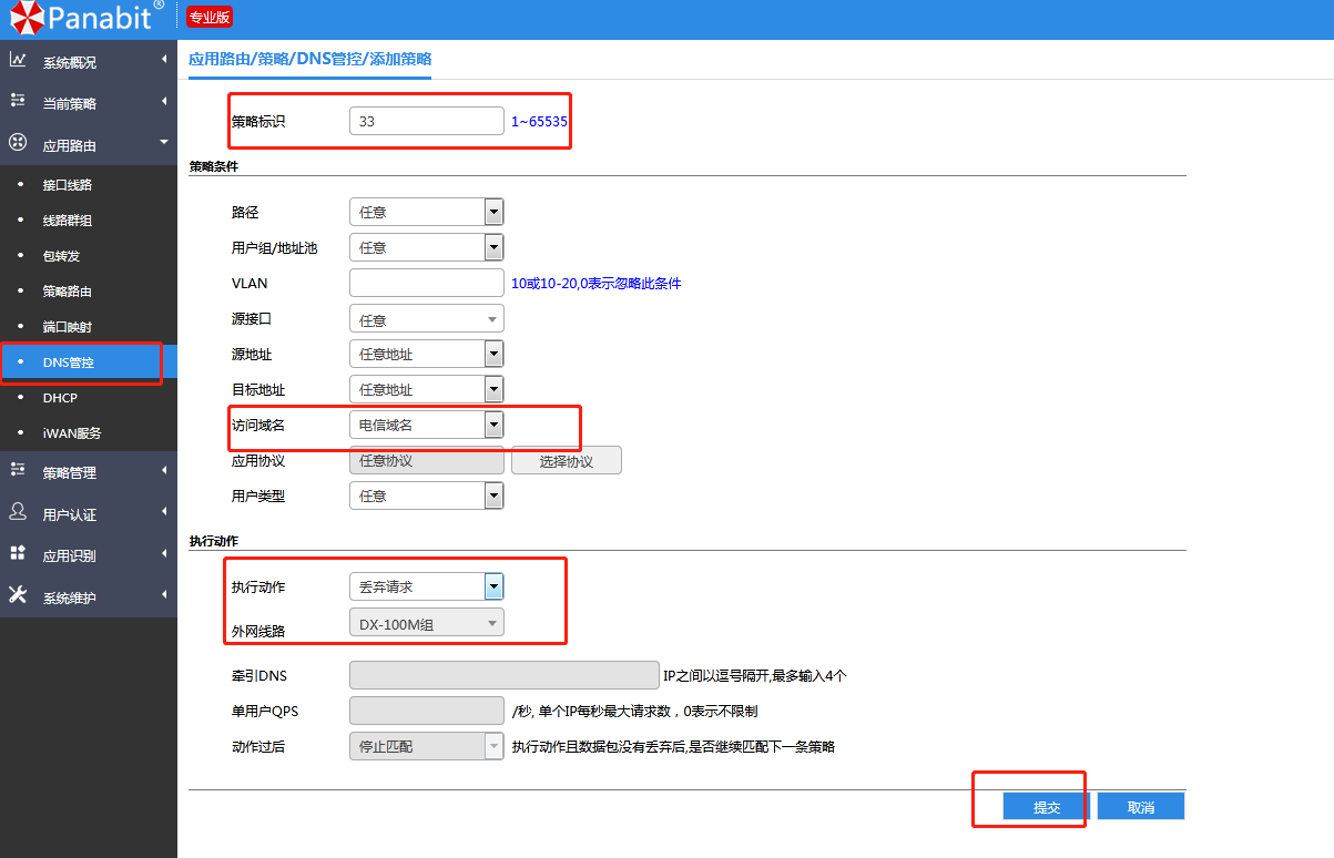1:先在内网,通过电脑接内网核心交换机、或内网电脑能直接访问到panabit路由(内网电脑与主路由器互相通信)2:打开网页,输入 https://10.8.8.8(默认出货ip) 或用域名映射进3:在pa里创建一个域名群组,组里添加运营商的各种链接,网址,域名之类,再做一条http管控丢弃即可,详情请见图解4:再加深拦截,采用DNS连接数进行抛弃拦截(必看)1:先在内网,通过电脑接内网核心交换机、或内网电脑能直接访问到panabit路由(内网电脑与主路由器互相通信)2:打开网页,输入https://10.8.8.8(默认出货ip) 或用域名映射进3:在pa里创建一个域名群组,组里添加运营商的各种链接,网址,域名之类,再做一条http管控丢弃即可,详情请见图解4:再加深拦截,采用DNS连接数进行抛弃拦截(必看)文档更新时间: 2020-10-03 12:01 作者:admin