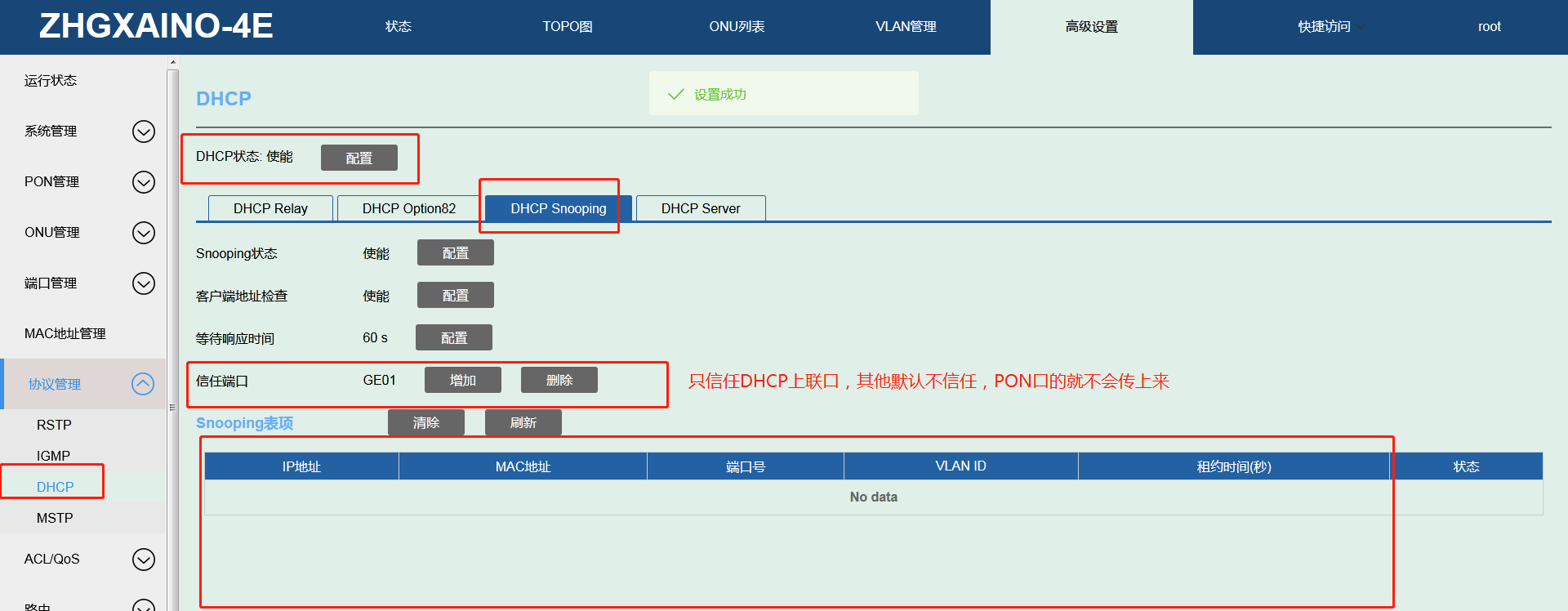 环境介绍,拓扑图1:设置DHCO信任,仅信任上联口的物理接口,不信任其他接口,或PON口传的DHCP异常2:注意保存数据环境介绍,拓扑图1:设置DHCO信任,仅信任上联口的物理接口,不信任其他接口,或PON口传的DHCP异常2:注意保存数据文档更新时间: 2022-07-18 16:50 作者:admin