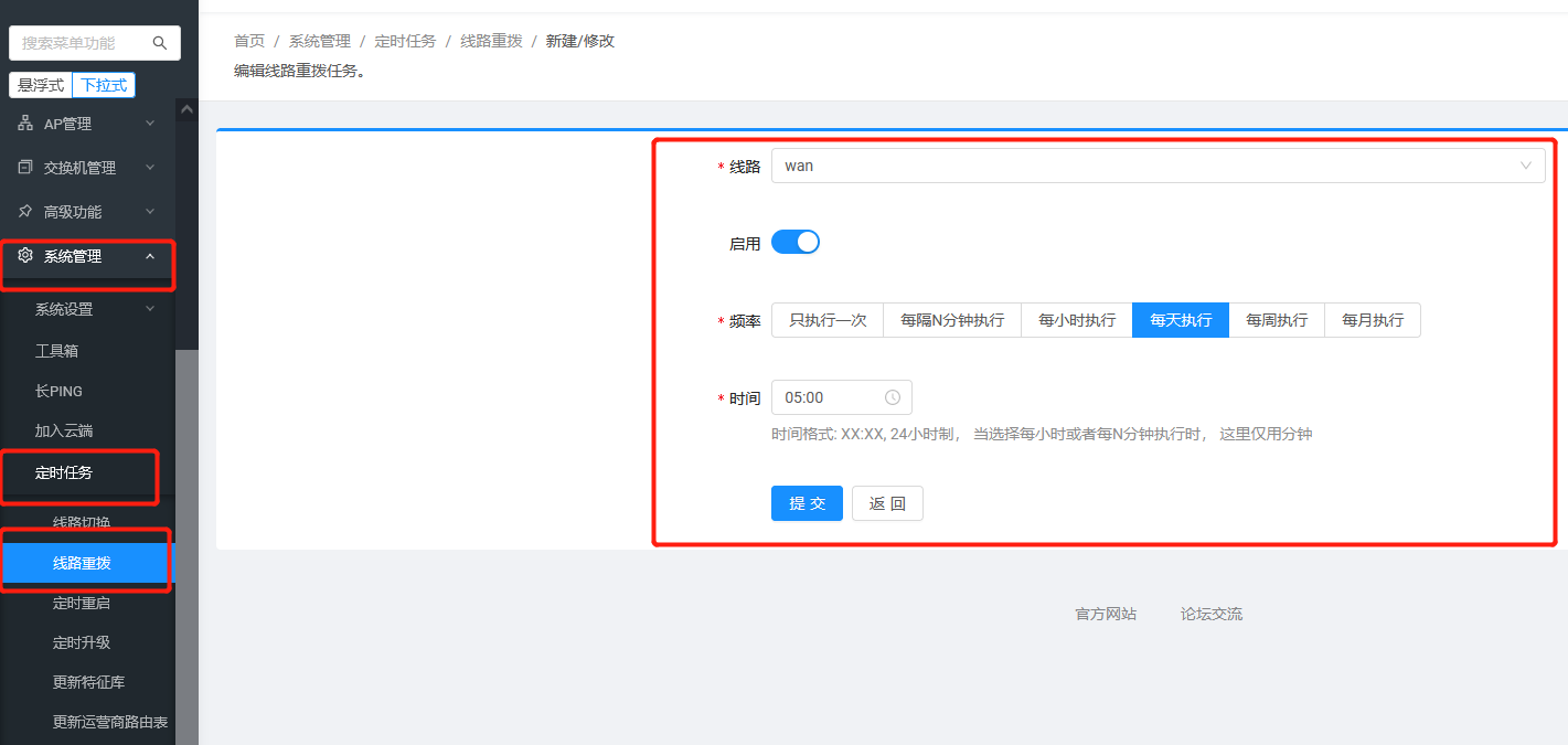 1:首先可以根据情况,给外线添加心跳,避免外线故障,尤其是静态IP,或DHCP的外线,添加心跳很有必要,避免外线不通外网造成无法上网, 但是系统还会往这条线路扔流量2:系统管理、定时任务-线路重播( 添加 外线重播 )1:首先可以根据情况,给外线添加心跳,避免外线故障,尤其是静态IP,或DHCP的外线,添加心跳很有必要,避免外线不通外网造成无法上网, 但是系统还会往这条线路扔流量2:系统管理、定时任务-线路重播( 添加 外线重播 )文档更新时间: 2021-12-17 10:45 作者:admin