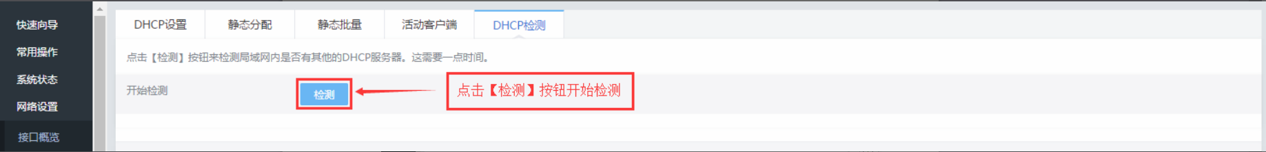 点击【检测】按钮来检测局域网内是否有其他的DHCP服务器。这需要一点时间。