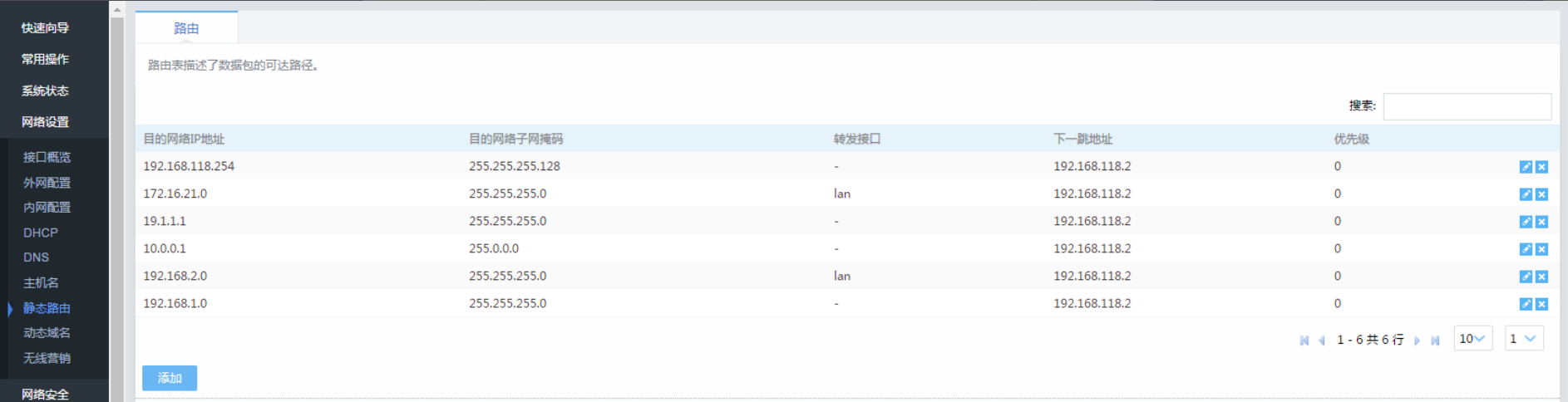 下一跳地址:可填路由器wan口地址,也可填与之相连的对端接口的地址