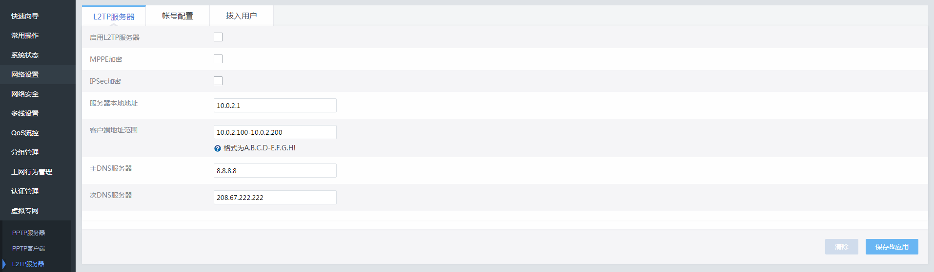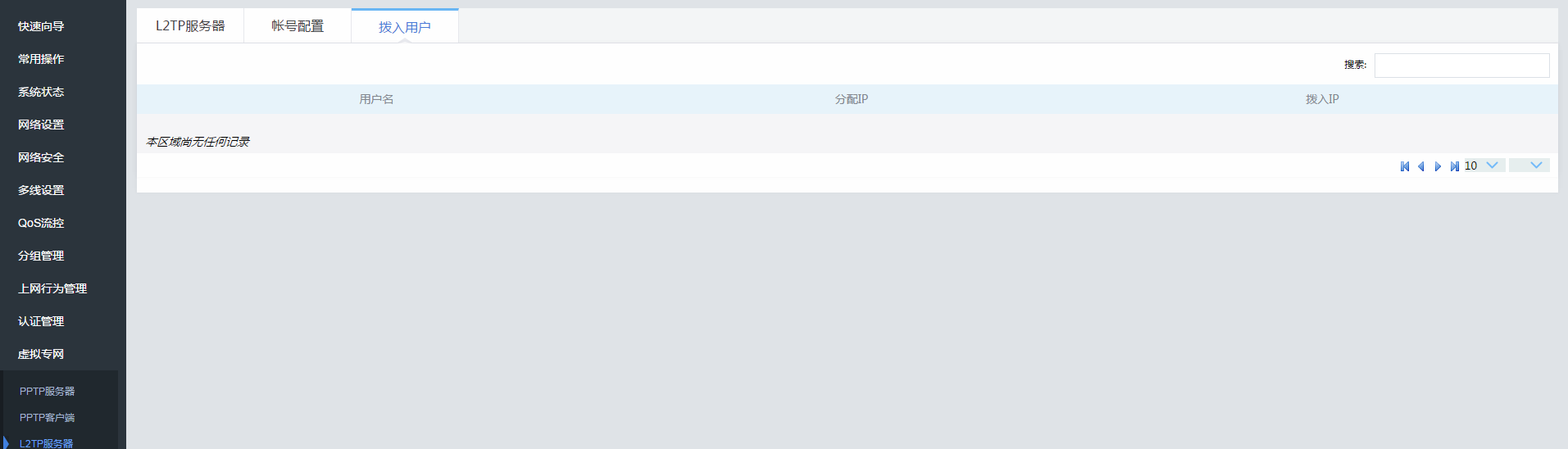 L2TP服务器L2TP服务器L2TP(Layer 2 Tunneling Protocol,二层隧道协议)是VPDN(VirtualPrivate Dial-up Network,虚拟私有拨号网)隧道协议的一种。点击添加按钮来添加VPN账号和密码拨入用户可以显示当前已经通过L2TP拨入的用户账号文档更新时间: 2020-02-25 14:02 作者:admin