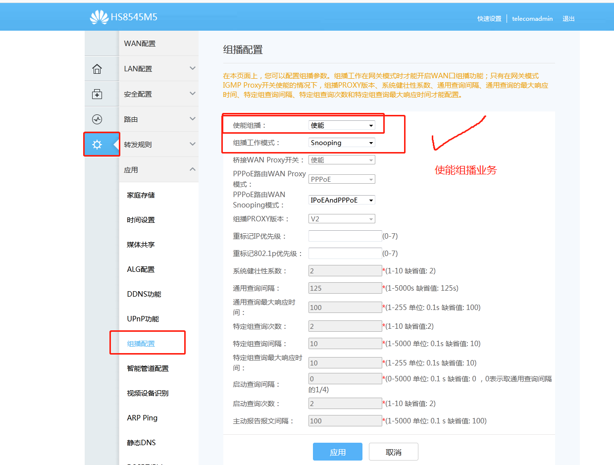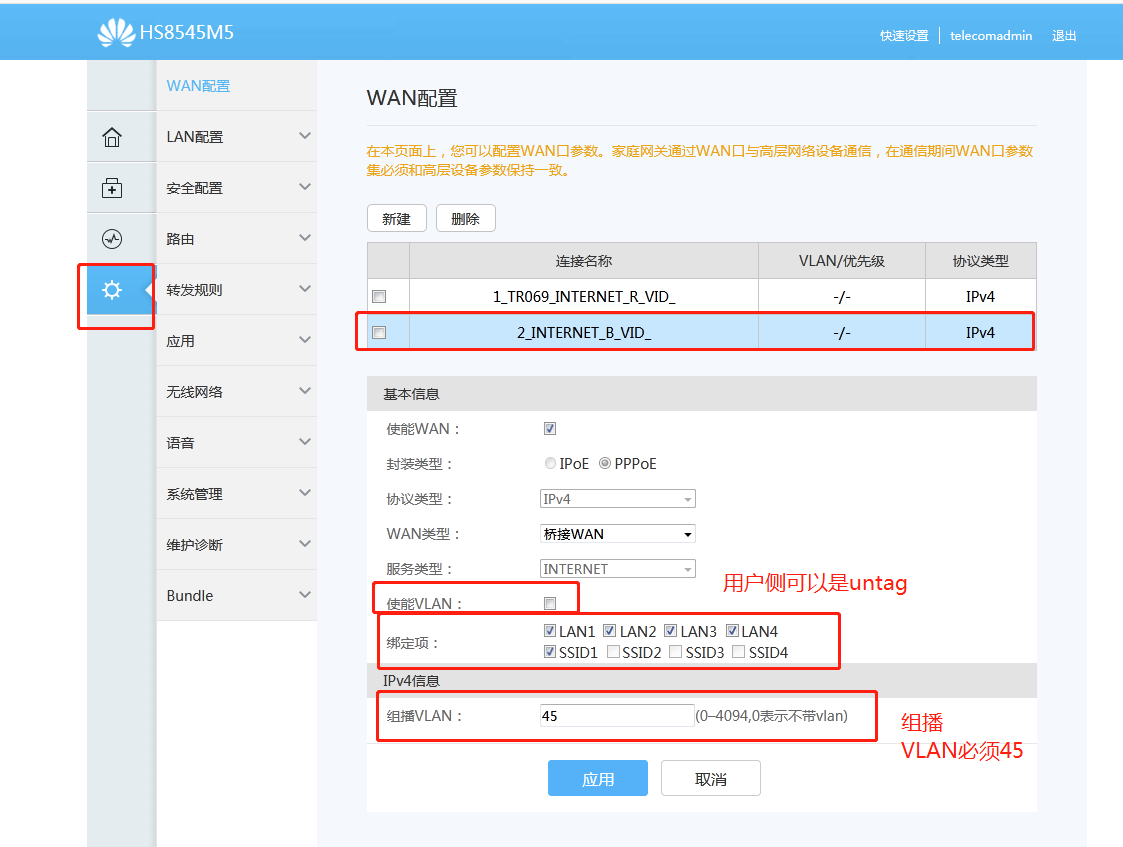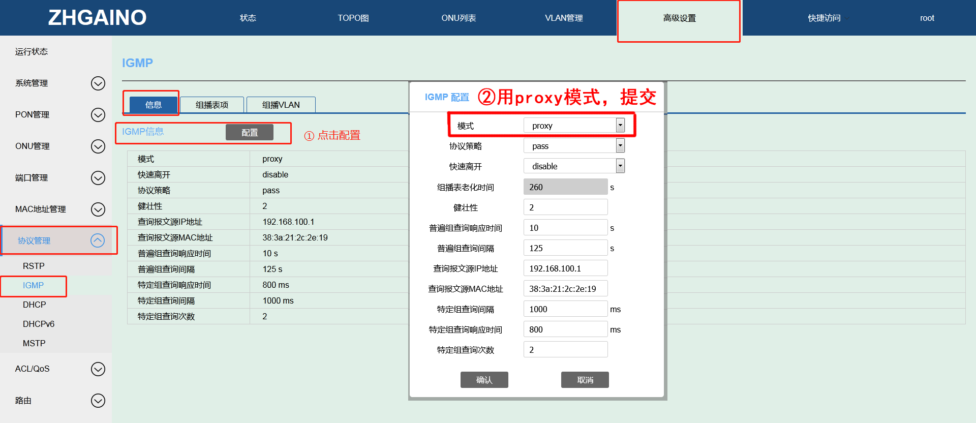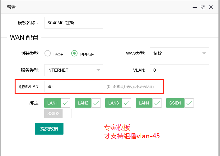 5:后台AINO光猫模板设置–与光猫侧参数注意事项(因为光猫默认没有打开igmp snooping,所有先采用导入配置文件处理,再做WAN口业务数据vlan)