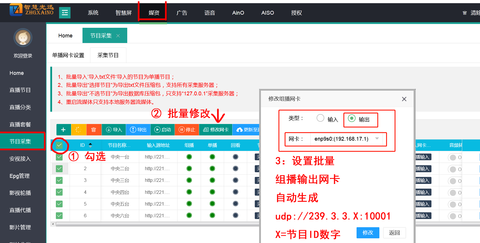 - 6:后台编辑直播套餐,都是组播地址宣告即可!!(最后测试终端观看)