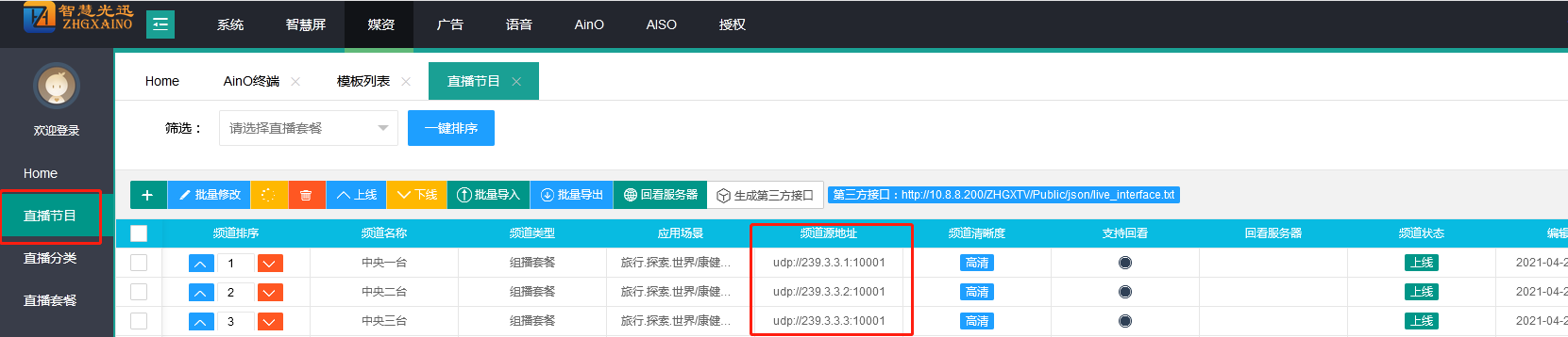 6:后台编辑直播套餐,都是组播地址宣告即可!!(最后测试终端观看)