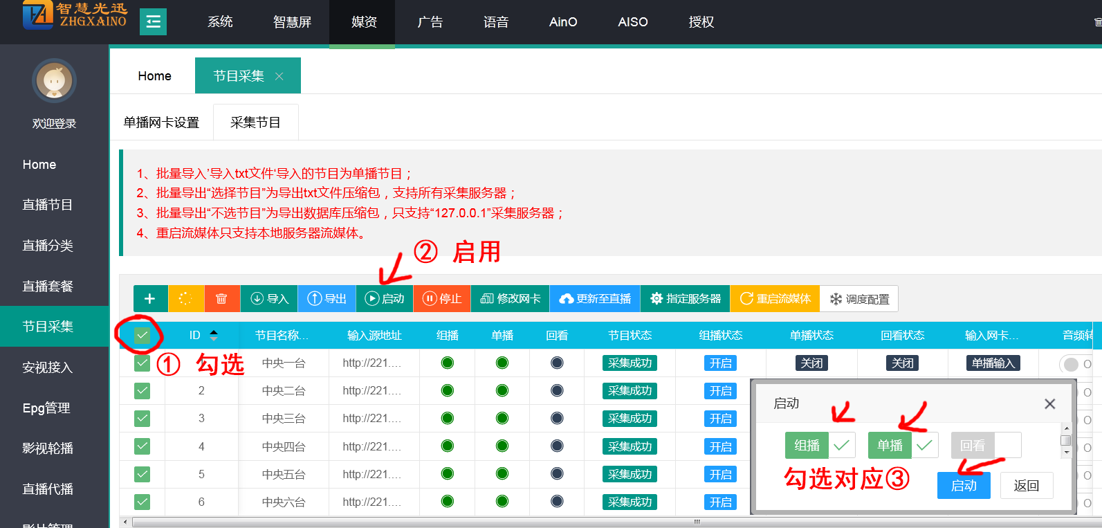 - 2:启动组播输出,并检查下组播码流是否正常!!